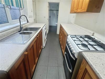 Double glazed rear window, range of wall, floor and drawer units with coordinating roll edge work surfaces, stainless steel sink unit and drainer with mixer tap, space for cooker, space for fridge, plumbed for washing machine, tiled walls and floor, double glazed rear door.