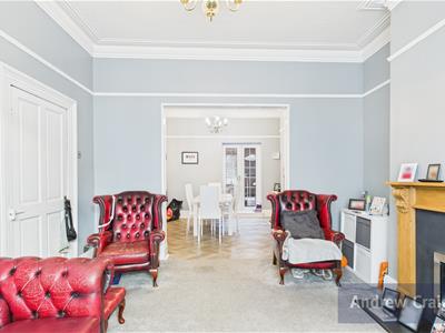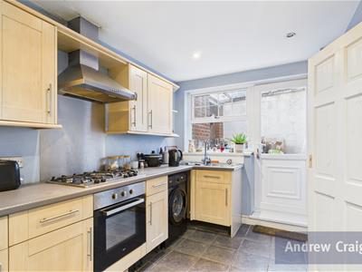 To the ground floor, a welcoming front lounge opens into the dining room through an attractive archway, creating a bright and social living area. The kitchen sits to the rear and features integrated fittings along with additional space for appliances.