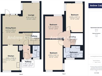4.24m x 2.61m (13'10" x 8'6")4.24m (13'11) x 2.61m (8'7)
