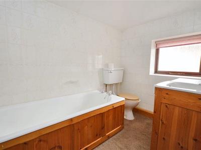 Double glazed frosted window | Tiled walls | W.C. | Bath | Wash hand basin in cabinet | Radiator