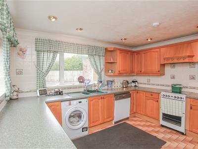 * The kitchen is fitted with a large range of fitted units with space for cooking appliances and white goods.