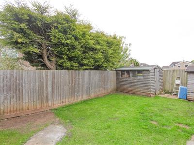 * The garden is a spacious corner plot mostly laid to lawn with a patio area, two sheds and a gate giving access to the side.
