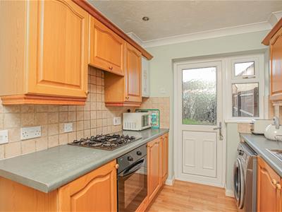 * Kitchen fitted with a range of base and eye level units, integrated oven and four ring gas hob, space and plumbing for washing machine, space for fridge freezer, door to rear garden.
