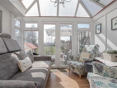* Conservatory access via lounge/dining room with laminate flooring and French doors to garden.