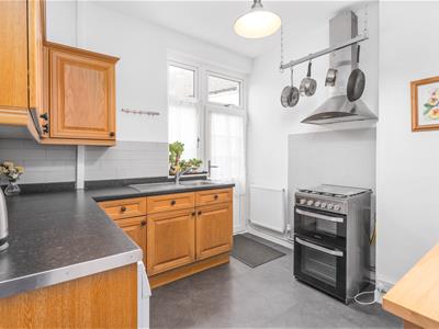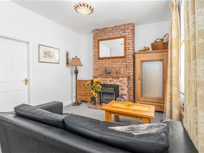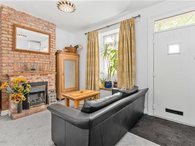 * The sitting room has a bay window to front with oak seat under, brick fireplace (currently blocked) and exposed chimney breast, fitted electric coal effect fire and adjacent gas point if required, door to stairs to first floor and door opening to the kitchen.