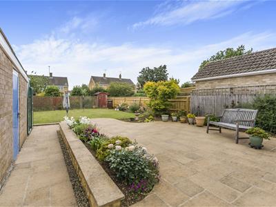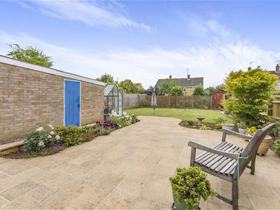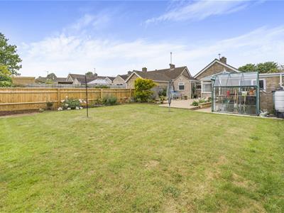 * From the drive a gate opens to the rear garden which is south facing and extends to approximately 66' in length x 34' wide. There is a large paved patio adjoining the bungalow with borders alongside, a lawn beyond, flower and shrub borders, greenhouse, flower and shrub borders, shed, small productive area for vegetables and soft fruits at the back.