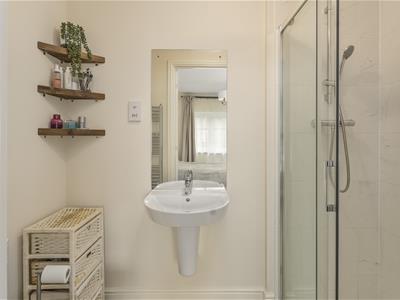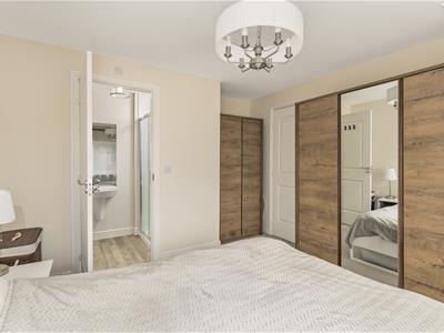 * Main double bedroom with window to front and door to ensuite shower room fitted with a white suite comprising fully tiled double shower cubicle, wash hand basin and WC, extractor.