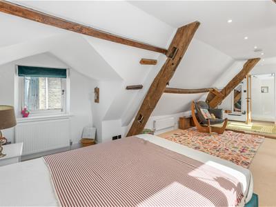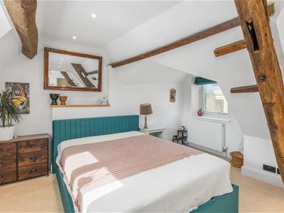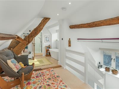 * Large master bedroom with exposed beams, free standing bath, windows to front and rear, doorway to the ensuite (which was remodelled within the last 24 months) which comprises a large walk-in shower, WC and vanity wash hand basin, tiled floor.