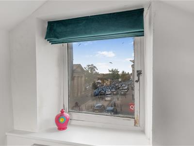 * Very spacious living room with understairs storage, a window overlooking the roof terrace and a window overlooking The Market Place to the front.