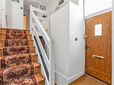 * Enter via the front door where there are steps down to a small utility area, space for coats and shoes, an exposed sandstone feature wall, stairs lead up the accommodation.