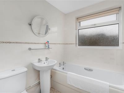* Modern bathroom comprising of bath, WC, wash hand basin and window.