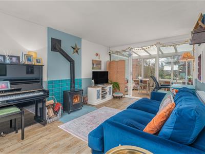 * Sitting room with free standing wood burning stove, large window to front, sliding double glazed patio doors opening to the garden room/dining room which has doors and windows to the rear garden and ceramic tiled floor.