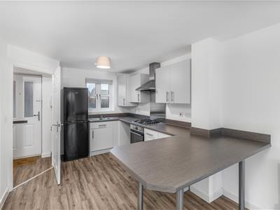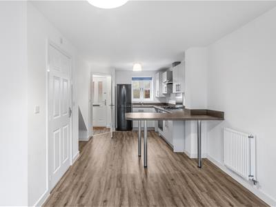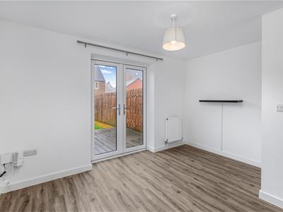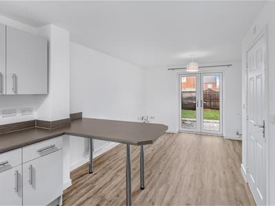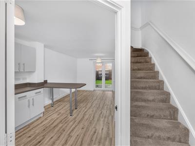 * Living kitchen/dining space with matt grey units, built in oven, gas hob and extractor, plumbing for washing machine, space for fridge/freezer, wall mounted ideal gas fired boiler, window to front, understairs storage recess, work surfaces and matching breakfast bar, vinyl wood effect floor which extends throughout the ground floor, sitting room area with French doors to the rear garden.