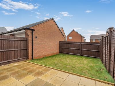 * Easily maintained level rear garden comprising patio, outside tap and power point, lawn and gate opening to the driveway.