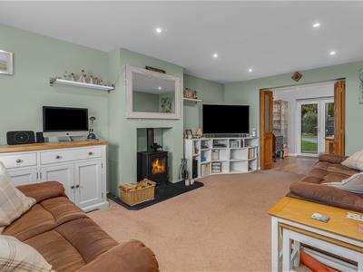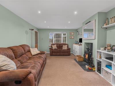 * Living room accessed off the hallway with bay window to front, log burning stove, double doors to dining room.