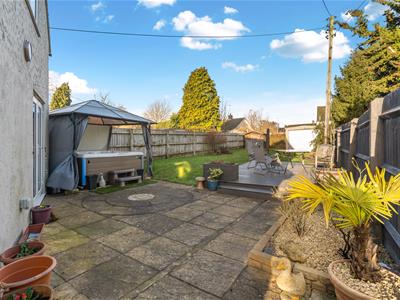 * The rear garden is mostly laid to lawn with a large patio area housing the hot tub (included in the sale if desired), a decked seating area, a garage/workshop (no vehicular access) and a large garden shed. A path leads to the gated side access. Outside tap. Outside power points.