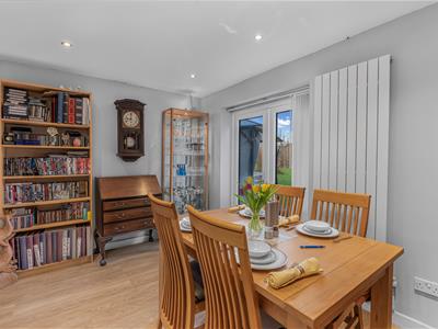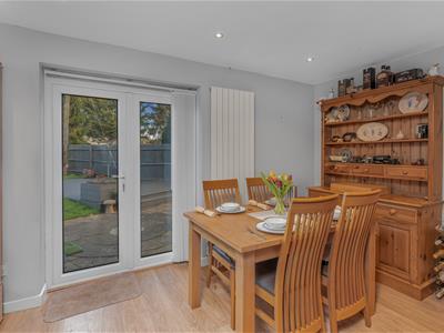 * Dining room with laminate flooring, French doors to rear garden, door to rear porch/utility.