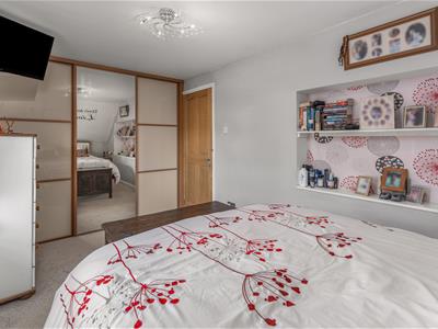 * Bedroom one is a double with window to rear, built-in wardrobe and built-in recessed shelving.