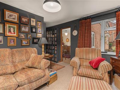 * Living room with gas fire, door to dining room and patio doors to the garden.