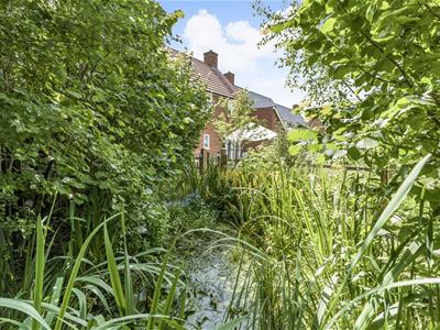 * The rear garden comprises a large lawned area with a range of mature bushes and shrubs, a large patio area, vegetable patch with a selection of herbs and fruit trees, a fenced off area of wild garden with a pond and wild native plants and trees. Gated side access, personal door to rear of garage.