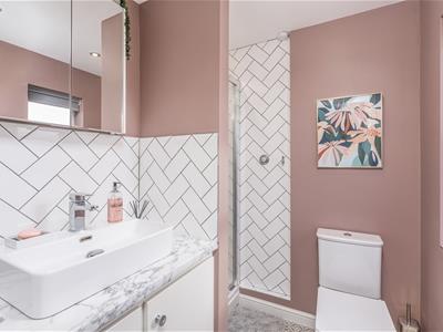* The master bedroom is a double with a window to front, built-in wardrobes and a refitted ensuite comprising a vanity wash hand basin, WC and rainfall style shower with smart start/stop button, mirrored wall cabinet, heated towel rail and window to front.