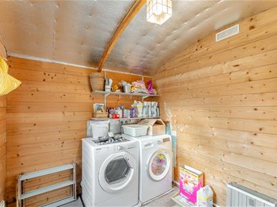* In the rear garden there is a substantial insulated garden room which is currently being used as a utility and has water, lighting and power and space for washing machine, tumble dryer, fridge and freezer.