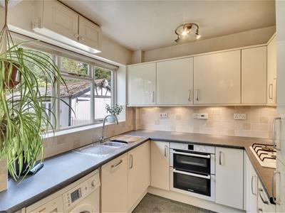 2.39 x 2.24 (7'10" x 7'4")With a range of base and eye level units with worktop over, stainless steel sink with mixer tap and drainer, rear aspect window, four ring gas hob and extractor hood over, void for plumbing and appliances, and ceiling light.