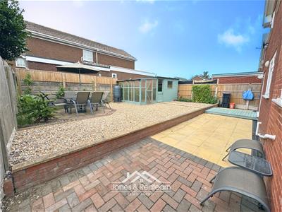 There are garden areas to the front and rear of the property. The front of the property having a paved driveway with decorative bricks, offering parking for mulitple vehicles and having access to the garage. The front garden is low-maintenance, featuring golden gravel and raised borders filled with a variety of mature plants and shrubs. A PVC gate provides access along the side of the property to the rear garden, designed for easy upkeep, with a brick-paved path leading to a patio area, a raised section is covered in golden gravel, complemented by a decorative patio. A large timber shed and a greenhouse are situated to the side, with an outside tap. The garden is enclosed with a combination of block walling, concrete posts, and timber fencing.