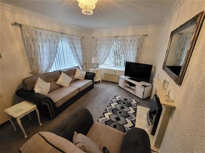 3.10m x 4.06m (10'2 x 13'4)With double aspect white uPVC double glazed windows. Feature fire surround with electric fire fitted. Two night storage heaters fitted, power points and carpet.