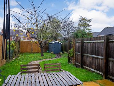 To the rear of the property there is a generous L-shaped garden, laid to lawn with a mature cherry tree and fenced boundaries.