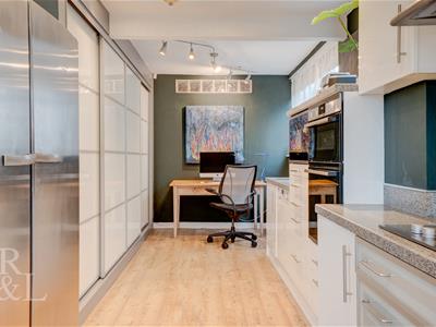In brief the ground floor accomodation comprises a light hallway upon entry displaying a beautiful partial stained glass window which leads you into the main reception room, second reception room, downstairs WC and U shaped stairs to the first floor landing. The living room is a generous size with a side aspect additional stained bay window flooding the room with natural light pieced together with a stylish fireplace. Off from the living room is the ample size kitchen/dining room which consists of high quality base and wall units housing integrated appliances from an eye level oven and microwave, gas hob with extractor hood with more than enough room to add further freestanding appliances along with large French doors granting access to the rear garden. The kitchen is L shaped and wraps around to an office space incorporating full width sliding doors which provides storage space but is currently being used for a hideaway desk setup. The ground floor additionally has a downstairs WC/cloakroom and a second reception room situated to the front aspect which boasts a curved bay window allowing natural light in.