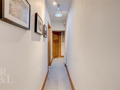 Facing the property there is a stone wall bordering the front with a walkway leading to the front door. Being a corner plot The side access and rear garden is larger than average and boasts lawn space, patio areas incorporating summer seating and flower beds. The garage is situated to the rear aspect and is accessed via wooden electric gates from Abbey Road.