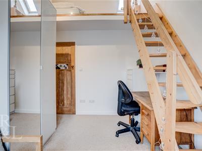 To the first floor there are four well proportioned bedrooms. The double master bedroom benefitting from built in storage space. Bedroom two is a further double showcasing a large bay window to the front elevation. Bedroom three has dual aspect windows and the final bedroom showcases a further staircase leading to a generous mezzanine floor which can be used as storage and incorporating skylight. All bedrooms share a three piece bathroom with a wash basin and WC and a stylish floor to ceiling glass block window and a further shower room comprising a quadrant shower with a further wash basin and WC.
