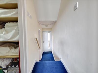 1.694 x 1.770 (5'6" x 5'9")Storage to side with adjustable shelving, door leading to bathroom comprising WC, Basin and walk in shower, laminate flooring and tiled walls.