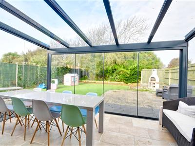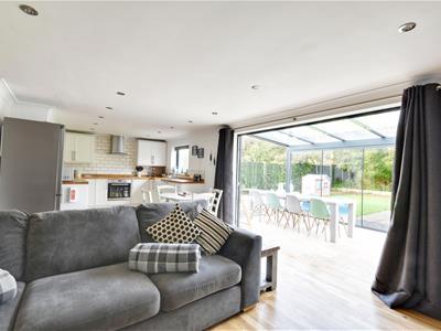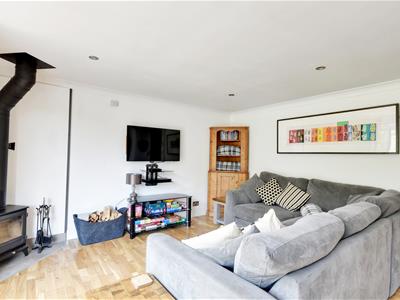 Log burner, bi-folding doors leading to the conservatory glass room, cupboard space, heated flooring.