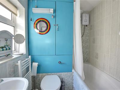 1.75 x 1.69 (5'8" x 5'6")Bath, pedestal wash basin and wc. Window to the front.