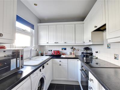 2.33 x 2.06 (7'7" x 6'9")Fitted with a range of traditional cupboard and drawer base units and matching wall mounted cabinets. Worktop with inset sink, ceramic hob with oven beneath. Space and plumbing for washing machine.