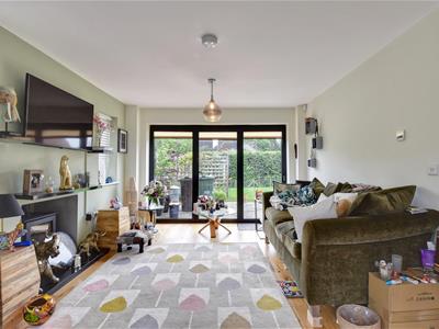 5.92m x 3.51m max (19'5 x 11'6 max)Being triple aspect with windows to the front and side elevations, glazed bi-fold doors to the rear allowing access through to the garden, feature fireplace with inset log burning stove and oak flooring with under flooring heating.