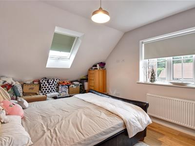 5.64m x 2.69m (18'6 x 8'10)Being double aspect with windows to the front and Velux style window to the side side elevations, fitted double wardrobe and radiator.