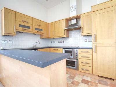 8.00 x 3.87 (26'2" x 12'8")Two windows overlook the front south elevation, kitchen are with breakfast bar, base and wall units with laminate straight edge worktops, one and half bowl single drainer sink unit with mixer tap, washing machine, integrated dishwasher, double oven with grill, electric hob with extractor canopy and light, built in fridge and freezer, tiled splashbacks, concealed lighting.