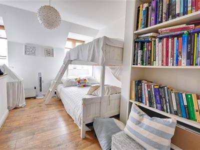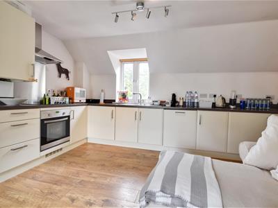 5.87 x 5.27 (19'3" x 17'3")A light and airy double aspect open plan living space. Juliet balcony and double doors to the front and window to the rear. Kitchen area extensively fitted with a range of modern cupboard / drawer base units and matching wall mounted cabinets. Integrated washing machine and dishwasher. Complimenting worktop with inset sink. Hob with oven beneath and extractor over. Wall mounted boiler.