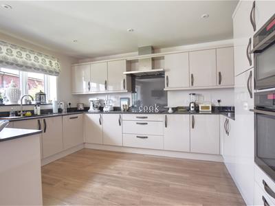 6.1 x 4.1 (20'0" x 13'5")Modern fitted kitchen with a range of matching wall and base level units, quartz straight edge worktop surfaces and splashbacks, built in fridge and freezer, integrated dishwasher, four ring electric hob with extractor hood above, sink with drainer and mixer tap, double glazed window overlooking the rear elevation, double glazed French doors giving access onto the rear garden, two double radiators, recessed ceiling spotlights.