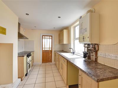 4.09m x 2.51m (13'5" x 8'3")Window to side, fitted with a range of wall and base units, complimenting worksurface with inset sink unit, space and point for cooker, space and plumbing for washing machine, space for fridge/freezer, space and plumbing for dishwasher, wall mounted calor gas fired boiler and door leading into: