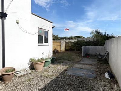 Incorporates a gravelled terrace, small patio area and lawn. Partially walled with pedestrian gates leading to side path.