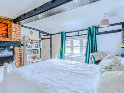 4.09m x 3.28m (13'5 x 10'9)Window to front aspect, Victorian style radiator, feature fireplace with bressumer style beam and exposed brickwork chimney, loft hatch and built-in cupboard, exposed timbers.