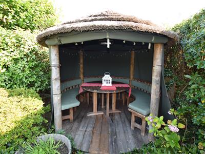 2.59m x 2.59m (8'6 x 8'6)The summer house is currently used as outdoor accommodation.