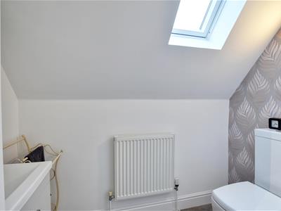 2.14m x 1.13m (7'0" x 3'8")Skylight to side, wash hand basin, low level wc, tiled floor.