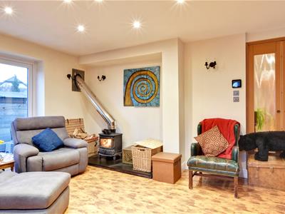 4.32m x 4.70m (14'2 x 15'5)Double aspect with window to side, double doors to the rear providing views and access onto the rear garden, log burner, wall light points.
