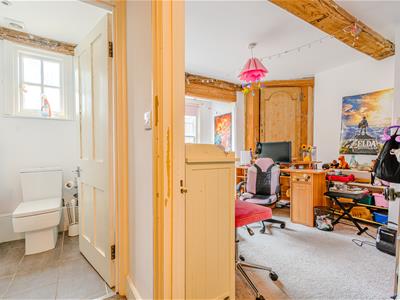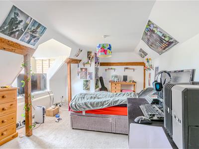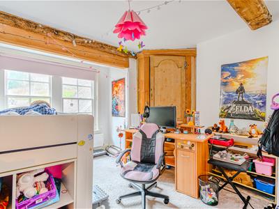 5.05m x 3.35m to the max (16'7 x 11' to the max)Forming a slightly irregular shape and within the eaves, traditional wooden glazed dormer style window to rear aspect, exposed wall timbers, radiator.