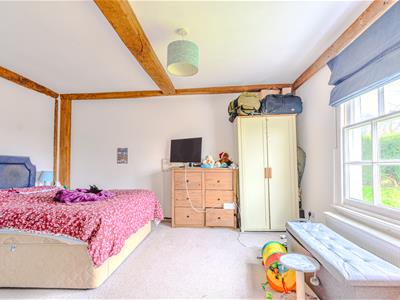 3.51m x 5.54m max within the eaves (11'6 x 18'2 maTraditional glazed dormer style window to front aspect with delightful rural views, exposed wall timbers, two eaves storage cupboard, feature cast iron fireplace and surround, radiator.